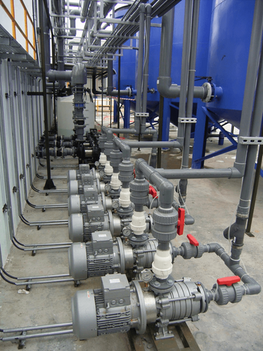 Für die Aufbereitung von umweltfreundlich abgereinigten Kühlschmierstoffen etwa aus Walzanlagen für Stahlprofile fließt das Wasser-Öl Gemisch über ein Sammelbecken mit Schlammfang einem Entnahmebecken zu und wird von dort in ein Sedimentationsbecken gefördert. EDUR-Mehrphasenpumpen transportieren das mit entsprechenden Chemikalien vorbereitete Medium in der Flotationsanlage im Kreislauf.